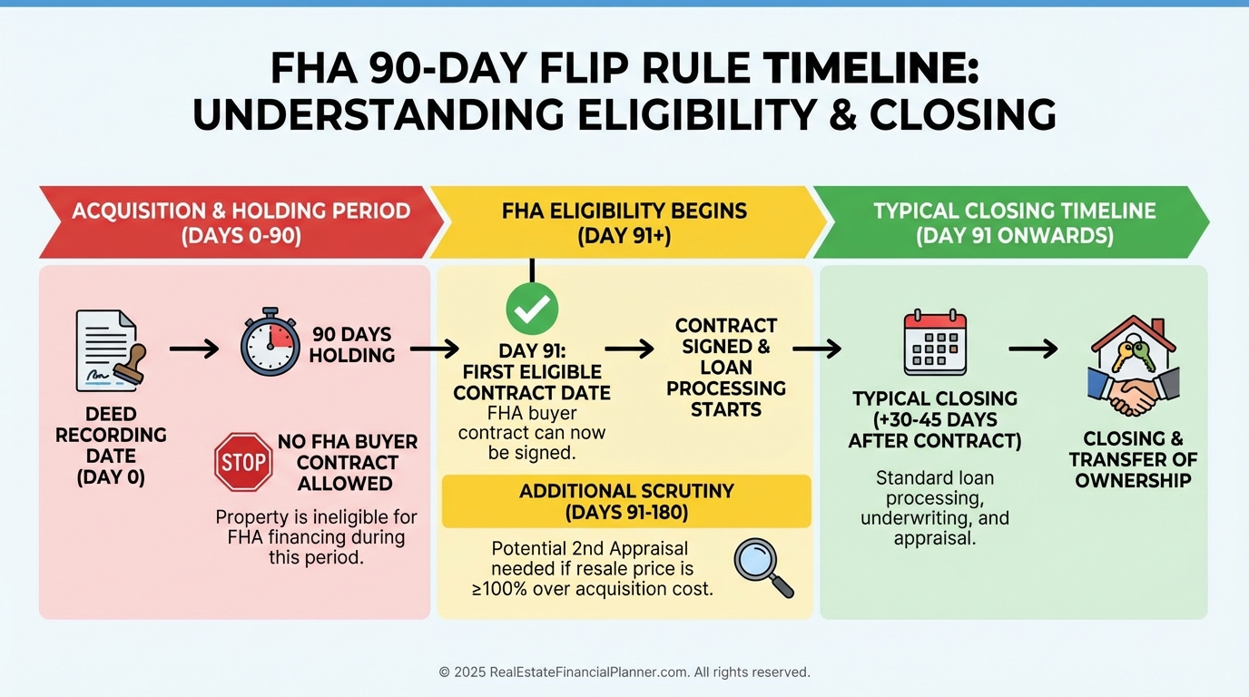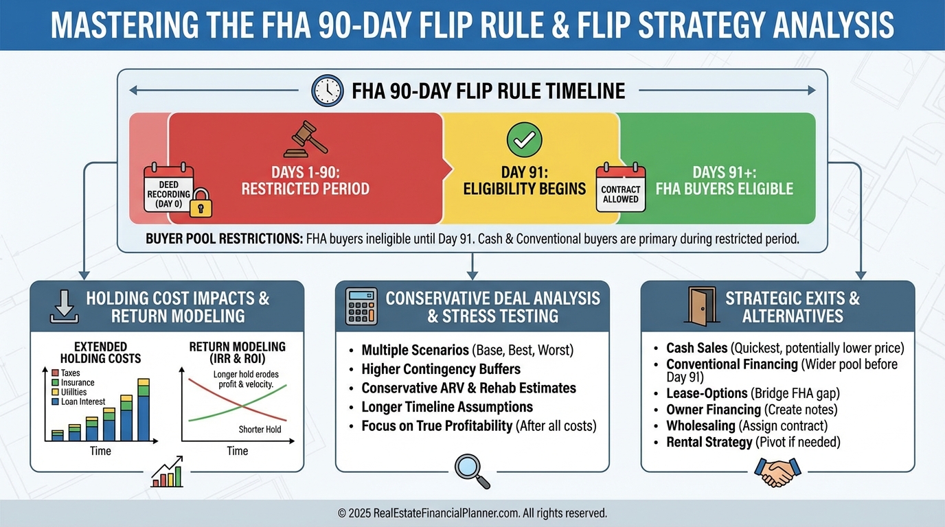 The 90-Day Flip Rule quietly kills deals when FHA buyers get denied at the last minute. Learn how to model timelines, returns, and exits correctly before it costs you real money.
