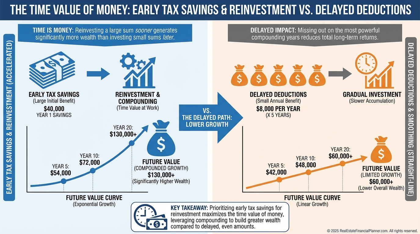 That shift matters because early tax savings can be reinvested, used to build reserves, or deployed to reduce portfolio risk during the most fragile years of ownership.