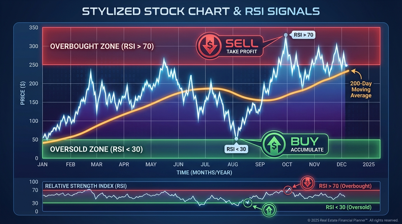 They also look for "overbought" or "oversold" signals using tools like the Relative Strength Index (RSI).