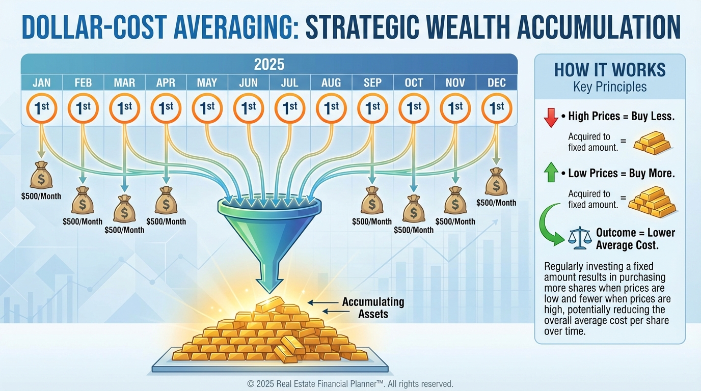 Instead of trying to pick the perfect moment, you invest a fixed amount of money at regular intervals.