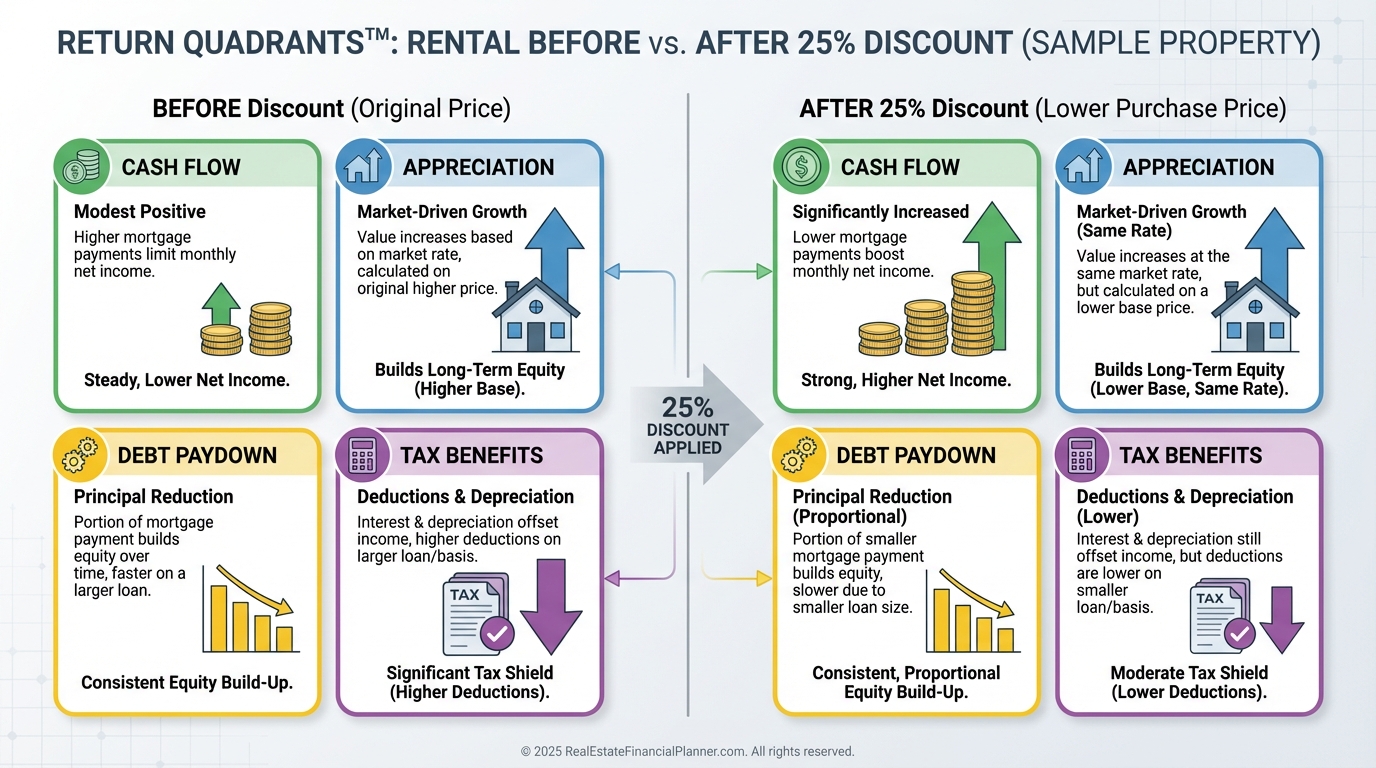 A pre-foreclosure discount typically boosts three quadrants on day one.