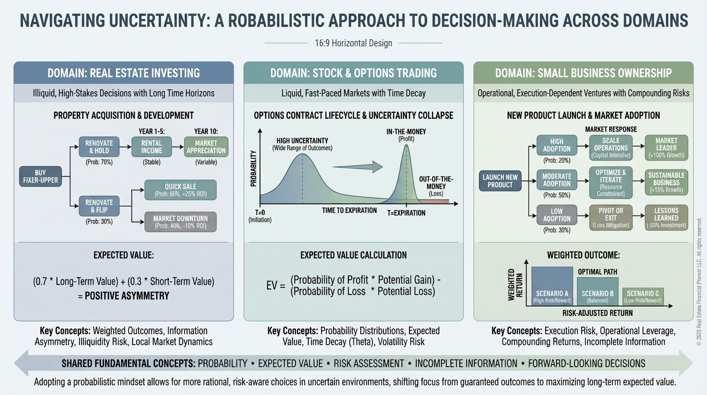 Learn how probability and statistics apply to real estate investing, stock and options trading, and small business ownership—so you can make clearer, smarter decisions with less risk and better long-term results.